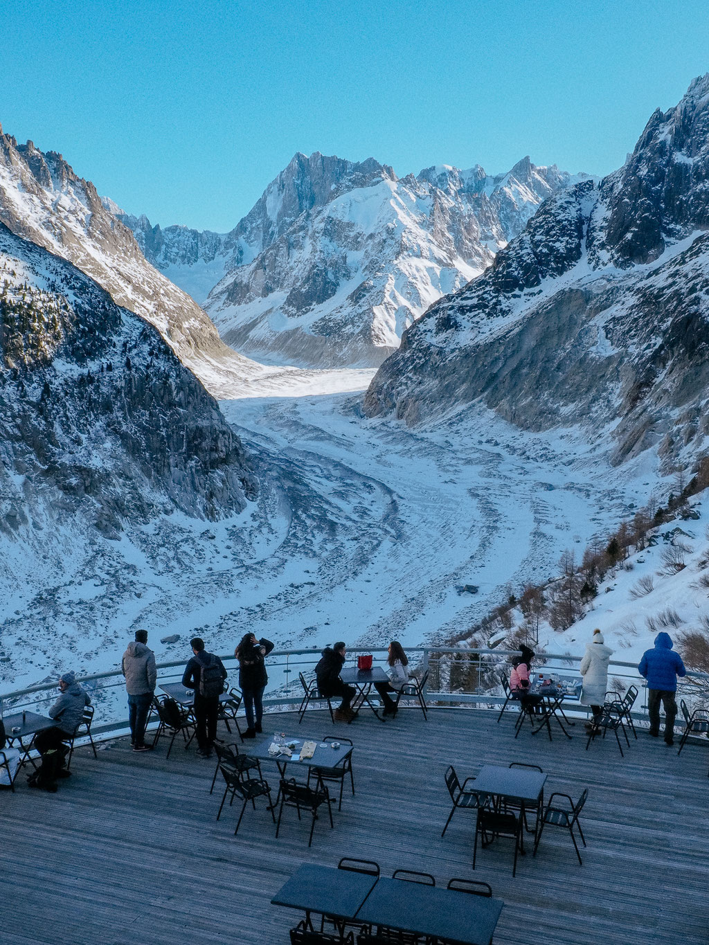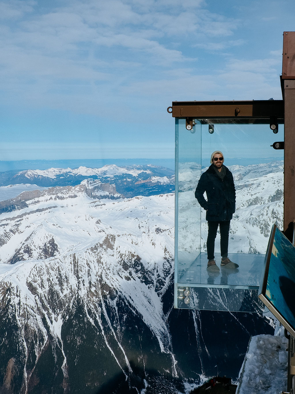 The facilities at Aiguille du Midi have been designed to immerse visitors in the surrounding mountains continually. Despite having limited time since we wanted to explore the Mer de Glace on the same day, the experience at Aiguille du Midi was unforgettable. It's a moment that neither I nor Thomas will ever forget!