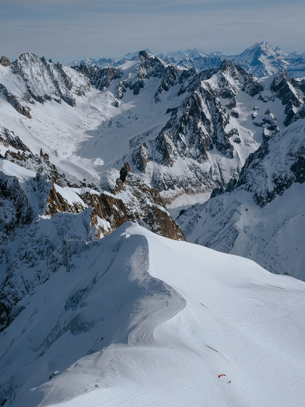 Moreover, the Aiguille du Midi serves as the launching point for the descent of the Vallée Blanche, as well as the Panoramic Mont-Blanc cable car that crosses the Giant Glacier to the Helbronner Point on the Italian side at an altitude of 3,462 meters (11,358 ft), providing breathtaking views of the Aosta Valley and Piedmont. The Panoramic Mont-Blanc is a 5-km long gondola that takes you to the Italian side of the Mont Blanc massif. It's important to note that it's closed during winter and that an ID is required. Additionally, it is not included in the Mont-Blanc Unlimited Pass.