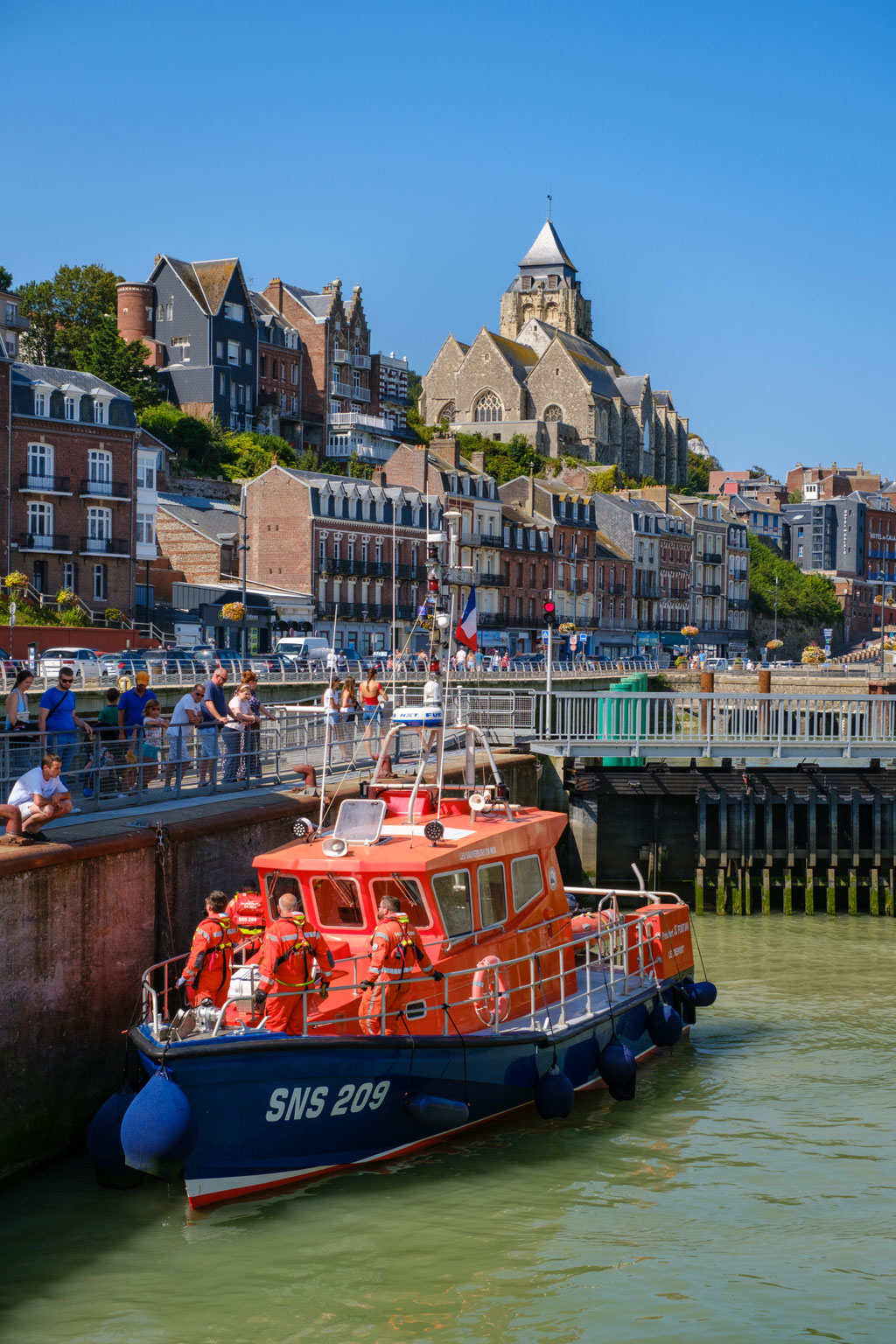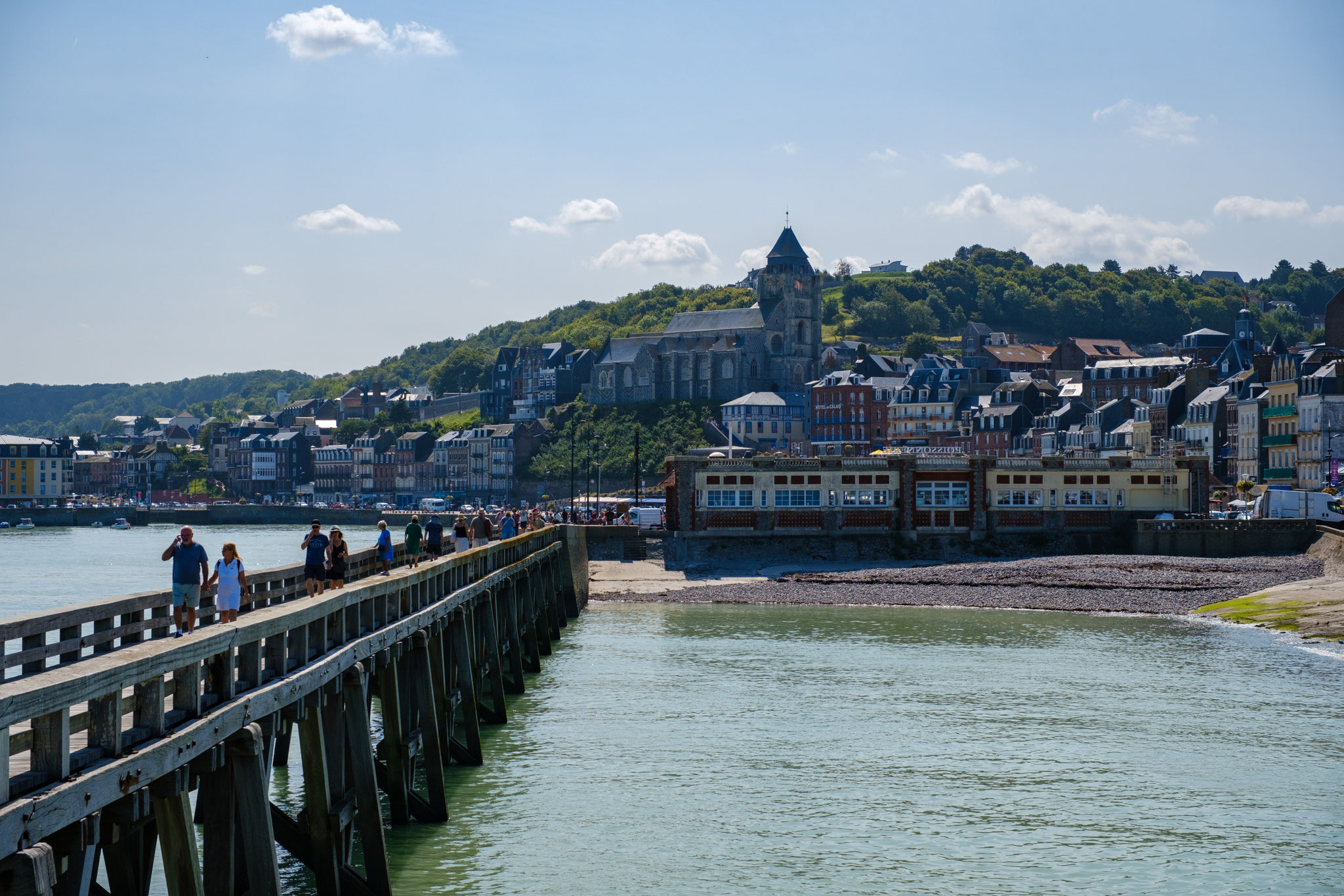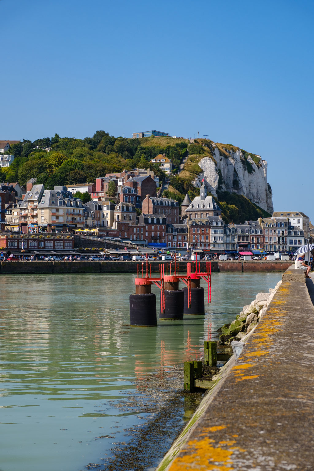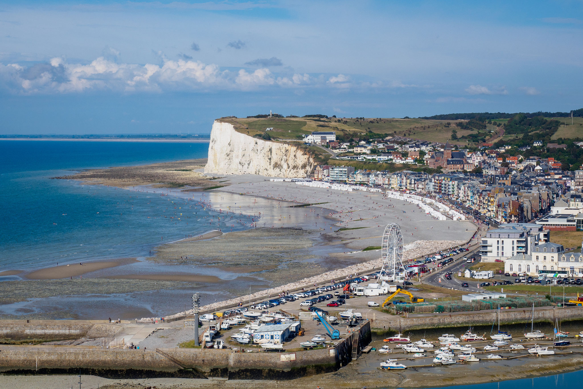 Le Tréport is a coastal town in Normandy with around 5,600 residents. It’s known for its fishing harbour, pebble beach, and the striking white cliffs that rise above the town. At the harbour entrance, the historic lighthouse still watches over the shoreline, while the local maritime museum offers insight into Le Tréport’s fishing traditions and seafaring past. Today, the town combines its working-port character with the feel of a classic seaside resort, making it a popular spot for seafood, cliffside walks, and day trips from Paris or northern France.