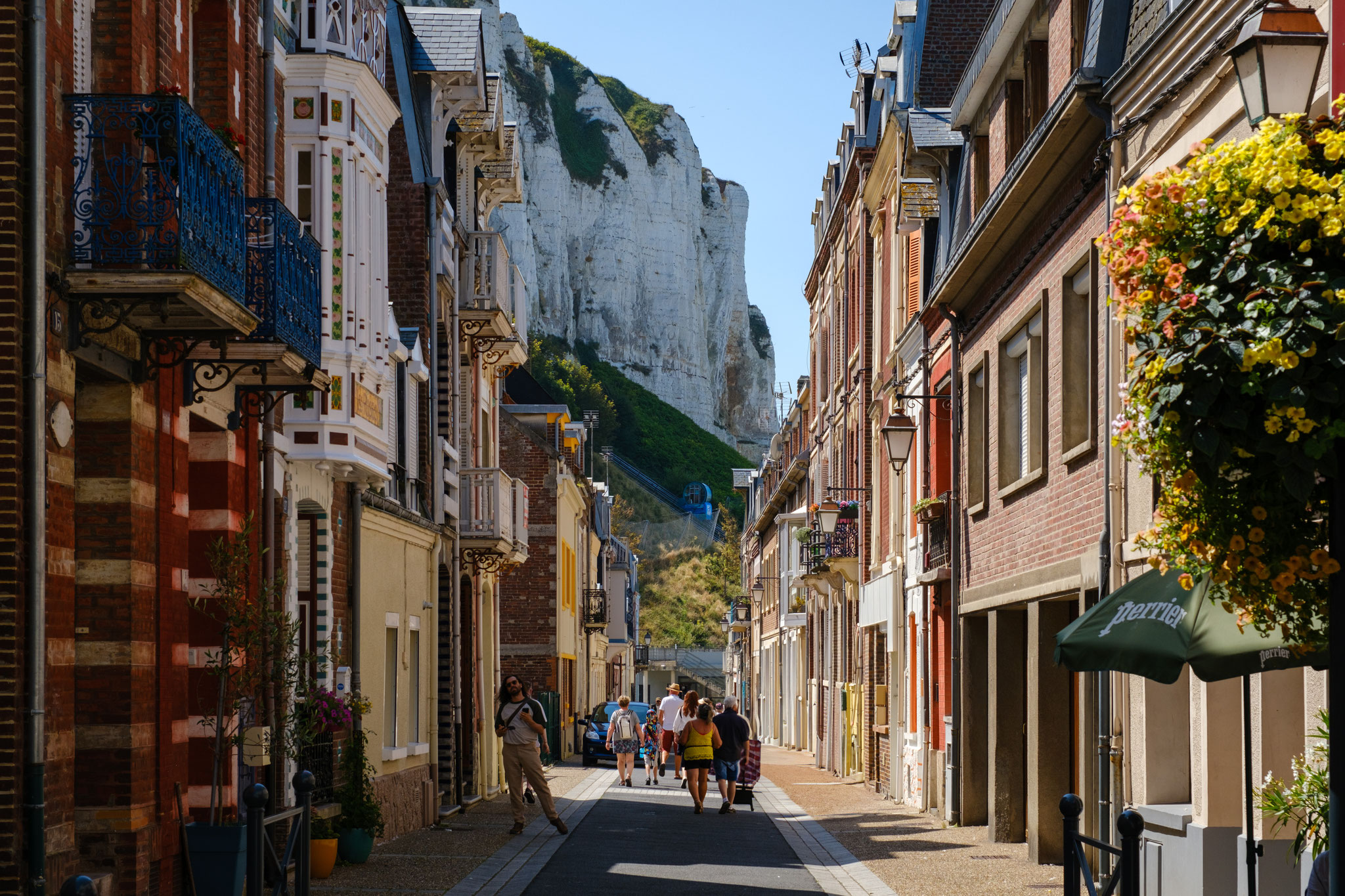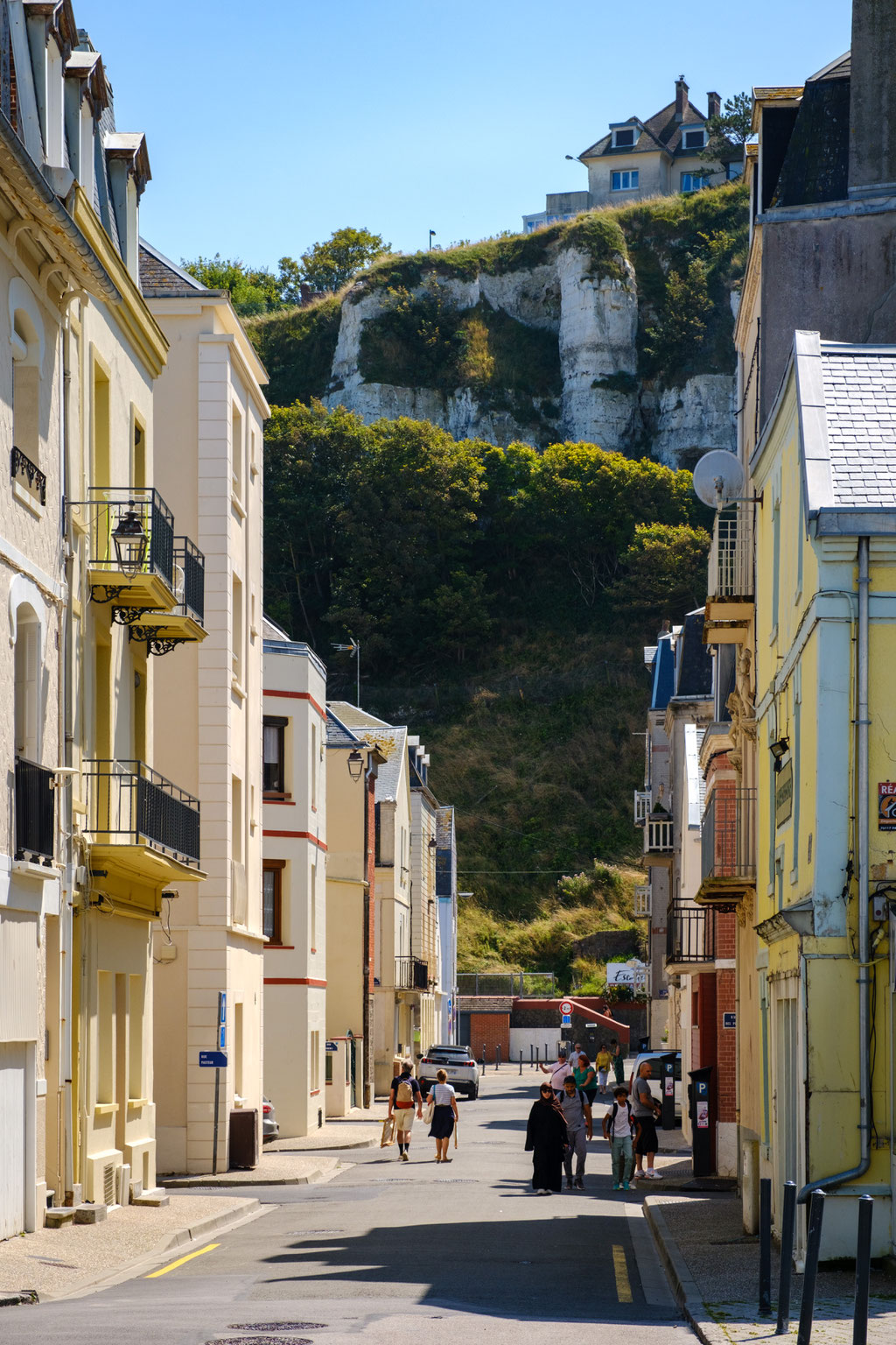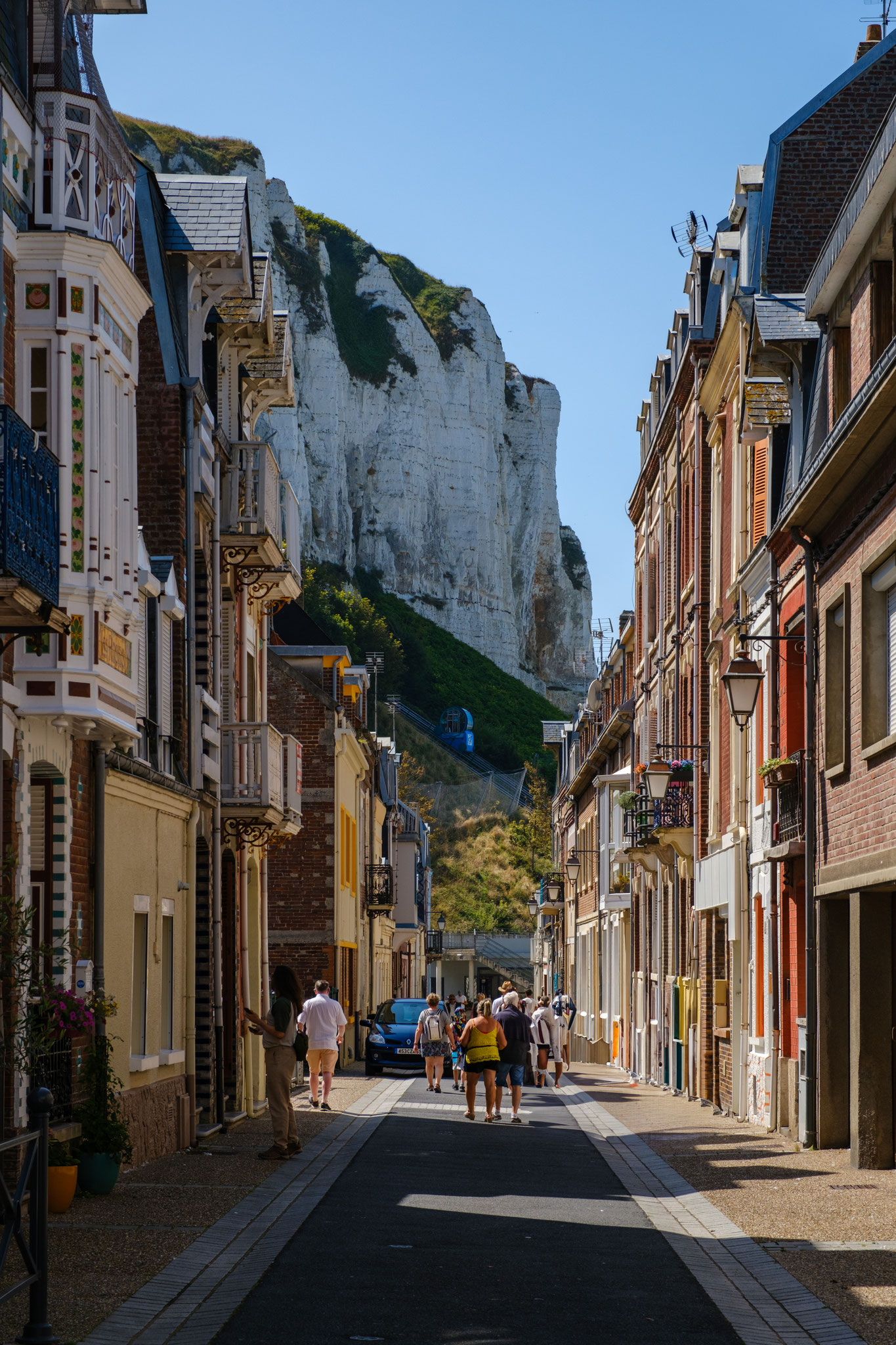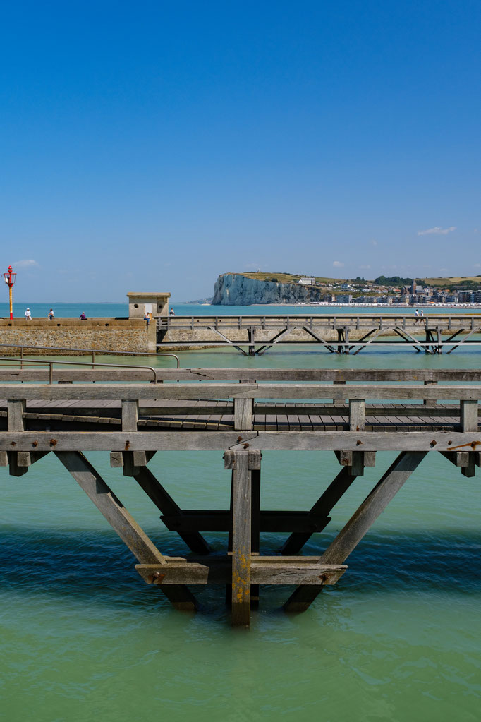 Le Tréport is a coastal town in Normandy with around 5,600 residents. It’s known for its fishing harbour, pebble beach, and the striking white cliffs that rise above the town. At the harbour entrance, the historic lighthouse still watches over the shoreline, while the local maritime museum offers insight into Le Tréport’s fishing traditions and seafaring past. Today, the town combines its working-port character with the feel of a classic seaside resort, making it a popular spot for seafood, cliffside walks, and day trips from Paris or northern France.