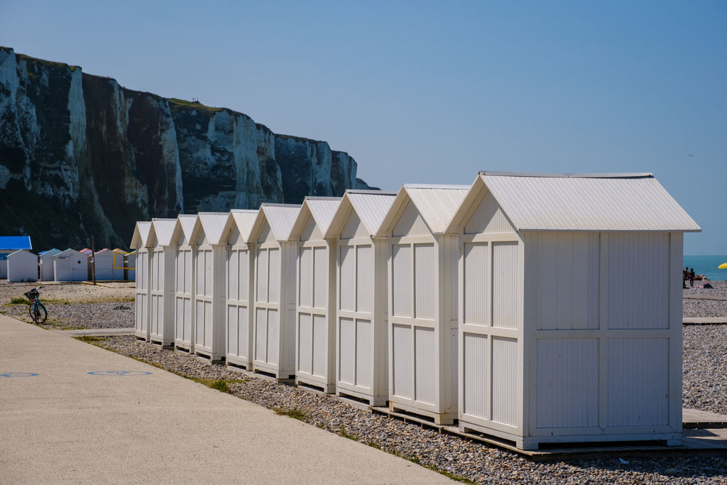 Next to the lighthouse, Le Tréport’s beach stretches along the rocky coastline at the foot of the famous chalk cliffs. About 120 colourful beach cabins line the shore, adding charm to the landscape. Stroll along the seaside promenade, breathe in the fresh sea air, and stop at one of the cafés with views of the cliffs and the English Channel. Whether you want to soak up the sun, take photos of the dramatic cliffs, or simply enjoy the sound of the waves, the beach is a perfect spot to unwind after exploring the harbour and lighthouse.