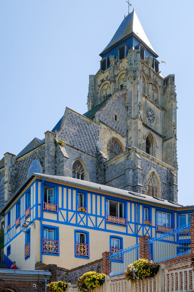 Discover the historic Church Saint Jacques, a Gothic Revival landmark dating back to 1362. Severely damaged during the Hundred Years' War, it was restored in 1699 and today stands as an impressive structure. Its chequered façade, made of Caen stone and flint, features a Gothic tower, a Renaissance portal with a finely decorated tympanum, and striking hanging keystones, the tallest reaching 3.8 m. The church is not only an architectural gem but also a testament to Le Tréport’s enduring history.