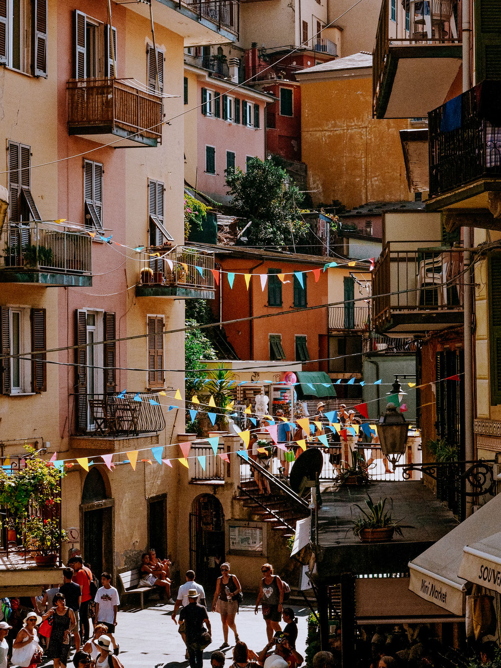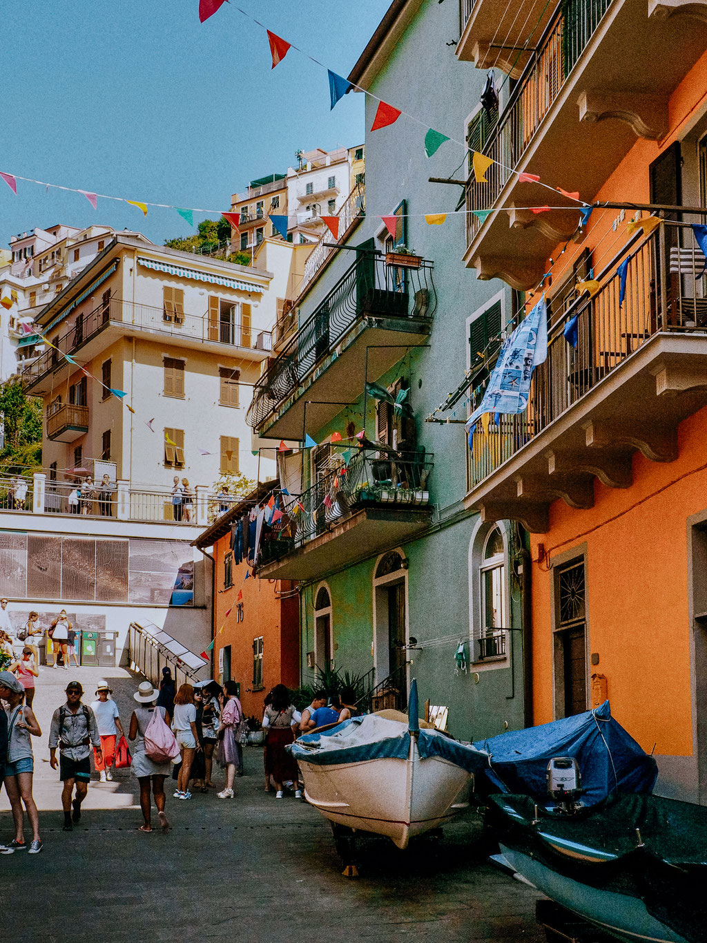 This will be probably one of your first stops if you're coming by train or by walk from the Via dell'Amore. When visiting the Cinque Terre you will notice you rarely have a wide and flat space when you stroll through the narrow steeping streets. So if you are like us and enjoy taking a moment to take photos and videos from different angles without feeling you're bothering people, this square is a good place for a break. As it is a bit elevated from the main street, it is a good spot for a nice perspective on the main street below flanked by boats.