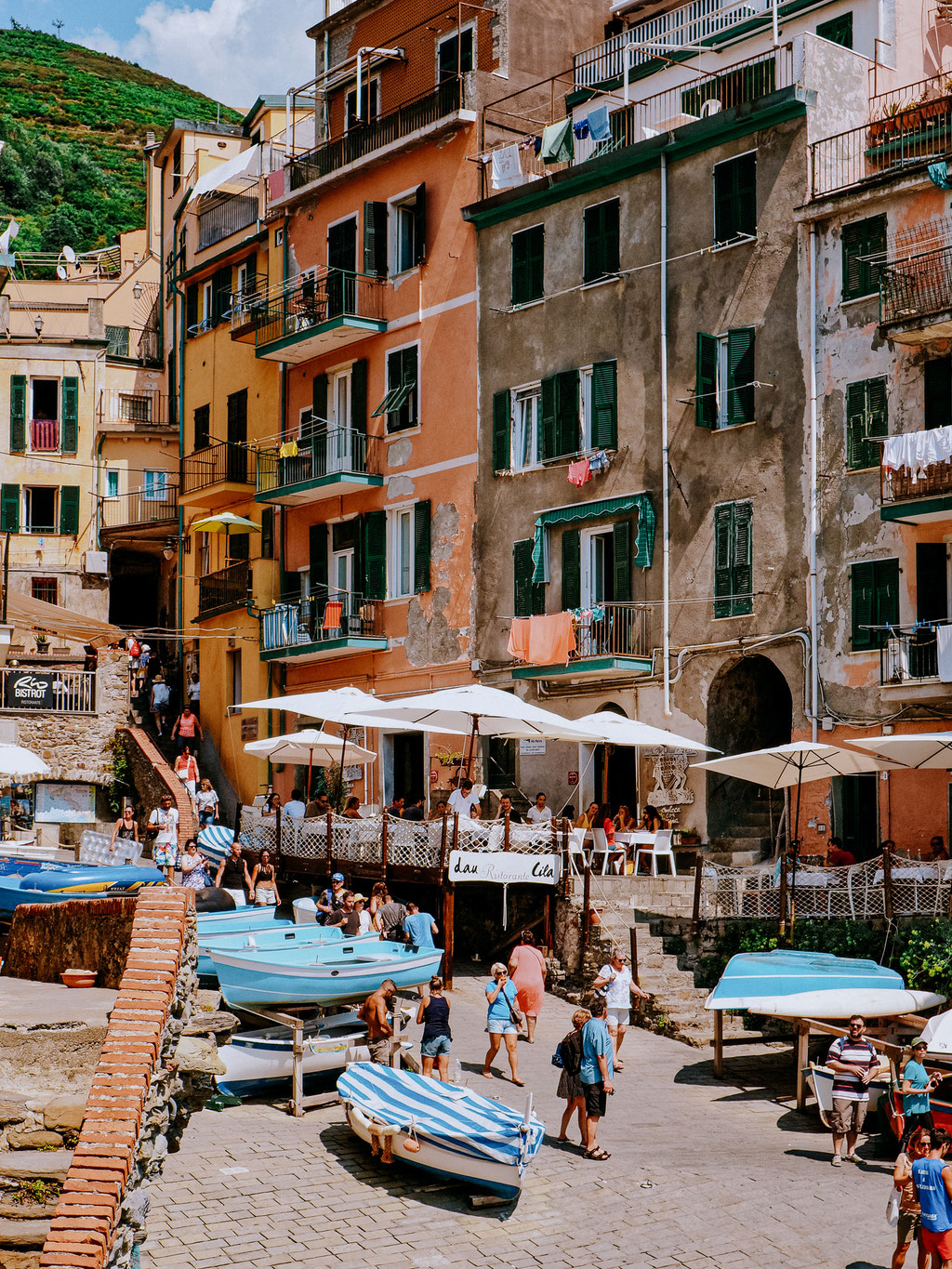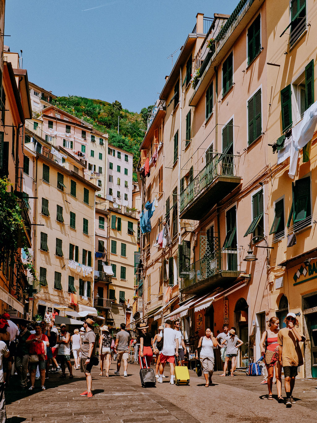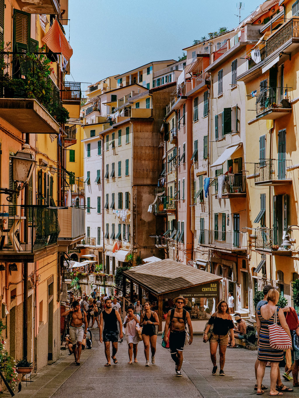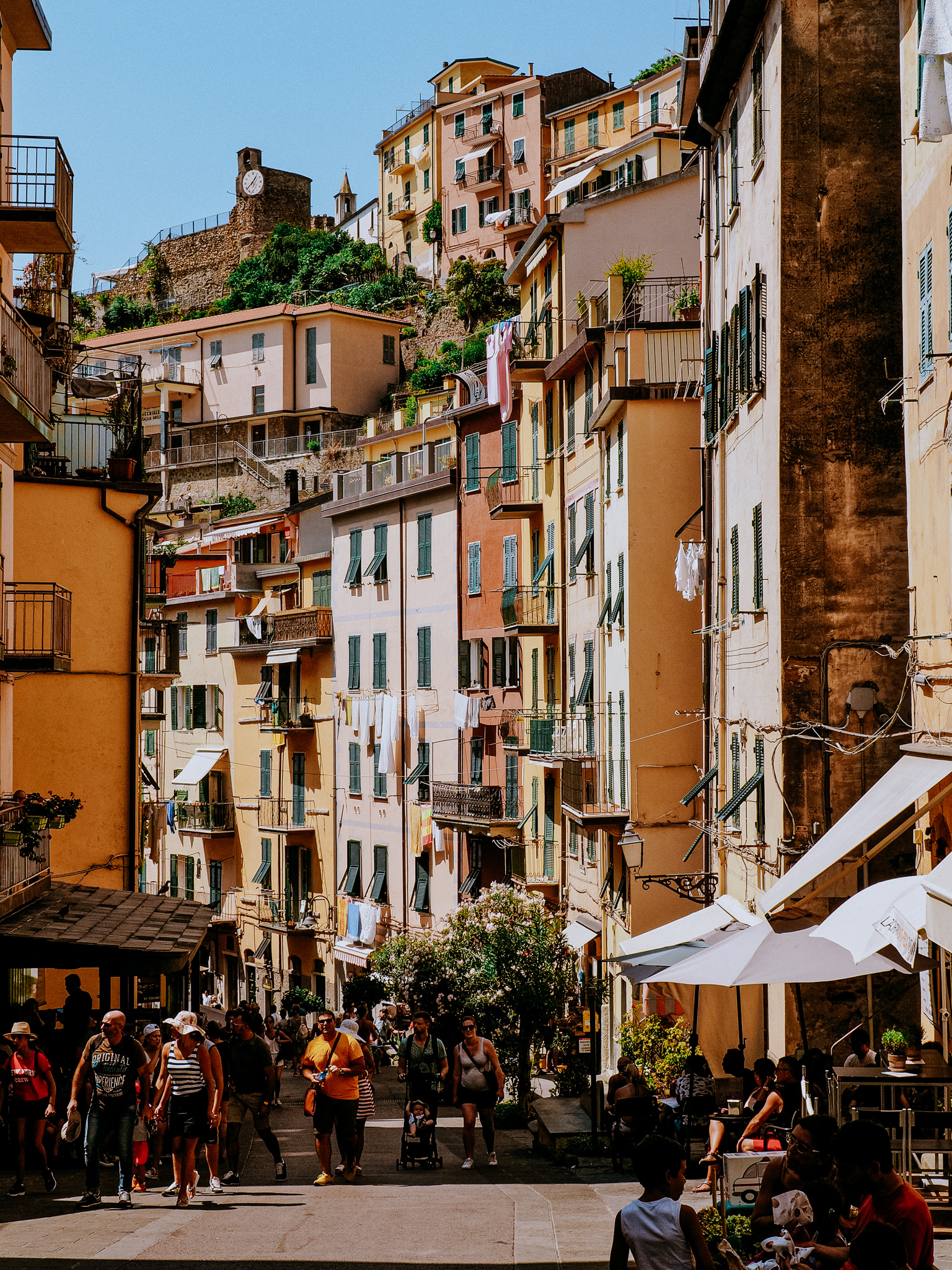 Like the main streets in the other Cinque Terre villages, Riomaggiore’s Via Colombo is the bustling hub where most of the village’s life takes place. Lined with restaurants, bars, and souvenir shops, it’s the perfect place to sample local cuisine, grab a coffee, or pick up a memento. Just be ready for a bit of a workout—this street slopes upward, so you’ll find yourself climbing it several times during your visit, especially under the warm Italian sun. But the lively atmosphere and charming storefronts make every step worth it.