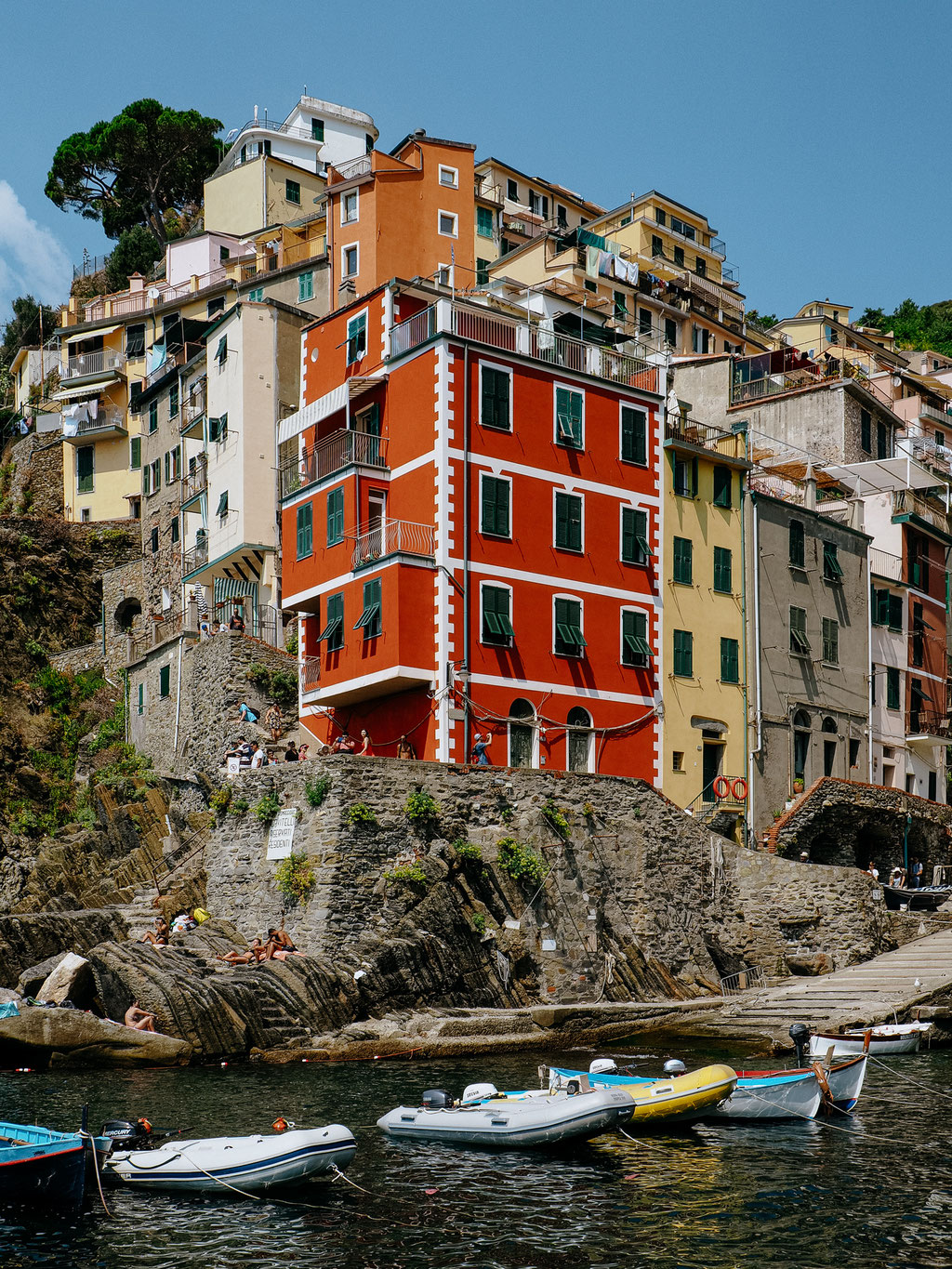 Without a doubt our favorite place in town, even more so in the evening, if you are lucky enough to stay in Riomaggiore and the day-trippers leave for La Spezia. It's quiet again. In our opinion, it is the perfect postcard of the Cinque Terre: colorful houses, small fishing boats, a cute little harbor. Everything is peaceful and the sunset is incredible!