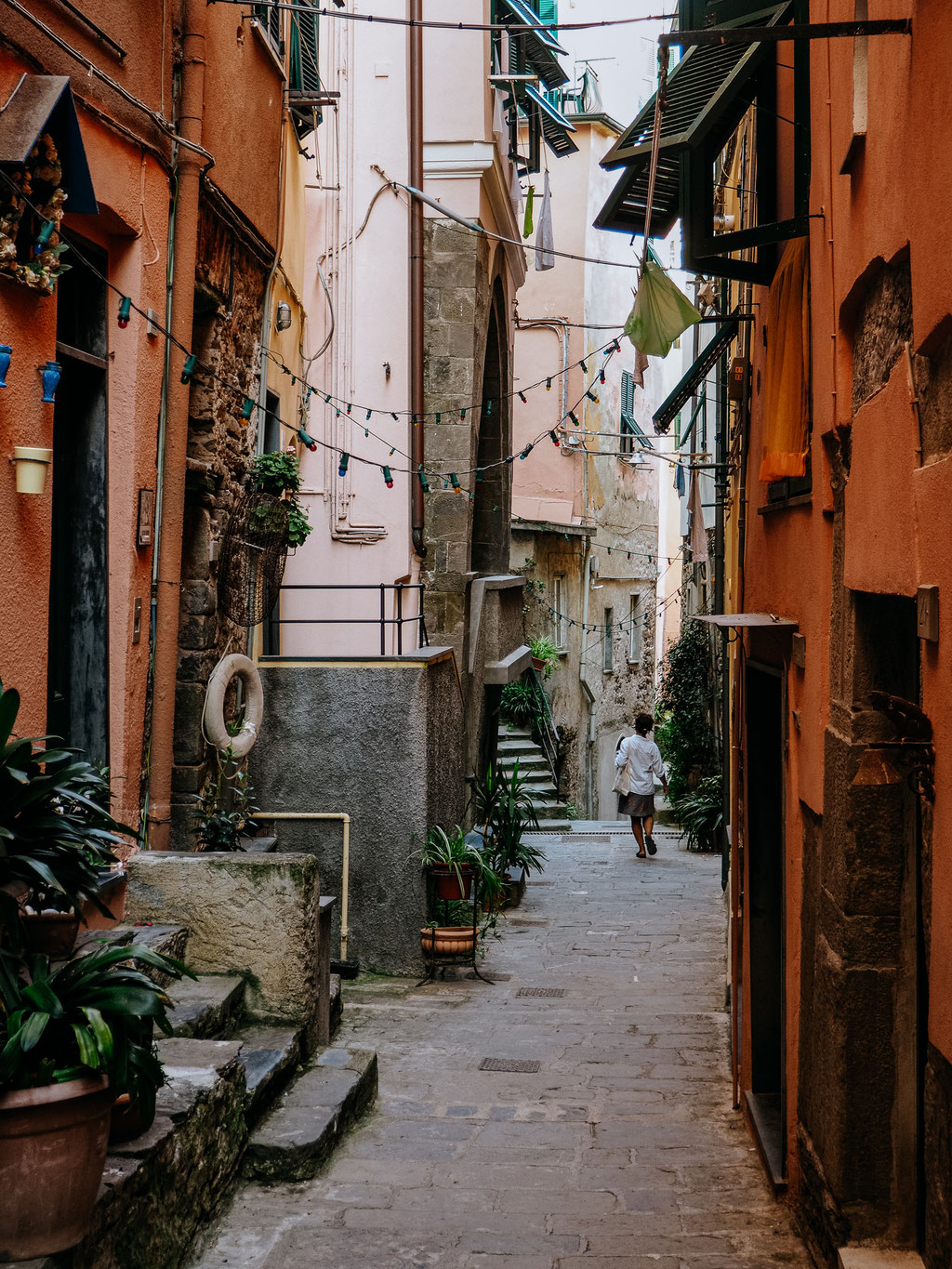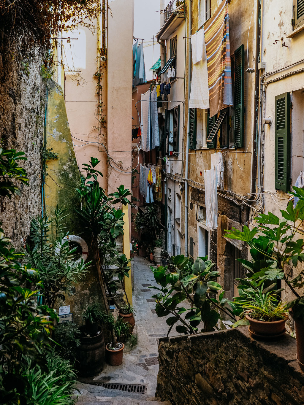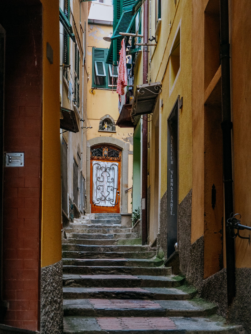 This is one of the charming alleyways we mentioned earlier, where the atmosphere feels completely different from Vernazza’s busy main street. Here, you’ll find narrow paths lined with colorful facades, laundry hanging from windows, and a quiet, authentic Italian vibe. It’s the perfect place to wander without a map — so make sure to get lost in this delightful maze of alleys and soak up the true spirit of the village!