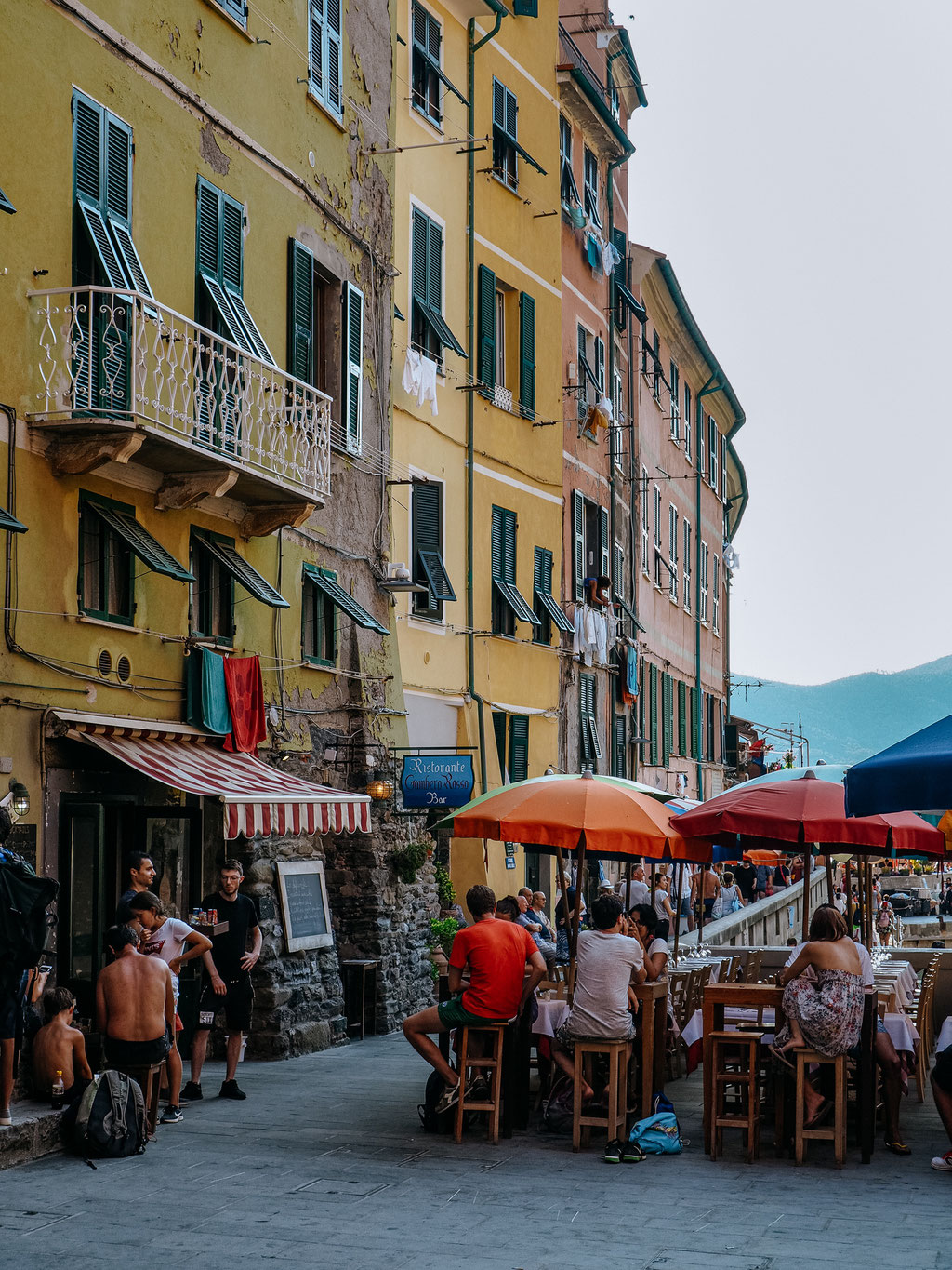 Via Roma is typical of the architecture of the Cinque Terre, with its colorful facades and shutters. It is Vernazza's main street, which can also be described as the commercial center of the city. There are many stores here, from souvenir stores and wine shops to restaurants and gelaterias. You can easily be distracted by the amount of options there are, but check where locals go and follow them! It's in this street that Italians take part in the passeggiata; the art of strolling around for leisure, mainly in the evening, with the aim of socializing. Hidden behind Via Roma, you can also lose yourself in the adjacent alleyways of the city, these are quieter than Vernazza's Main Street but as beautiful and charming!